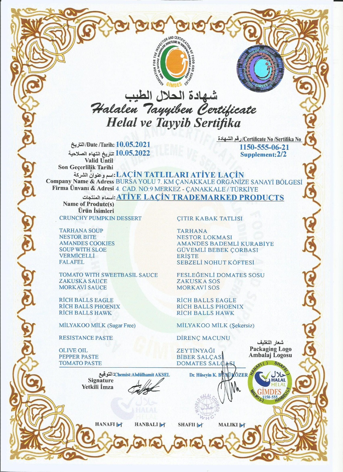 Atiye Laçin Gıda has an assertive commitment to its quality. In order to produce high quality products, it takes care to maintain its quality by selecting its raw materials from reliable suppliers who sell only the best quality products. Fulfilling the requirements of quality management systems; constantly improving its effectiveness. Thus, it can control every step of the product journey until it reaches its customers.